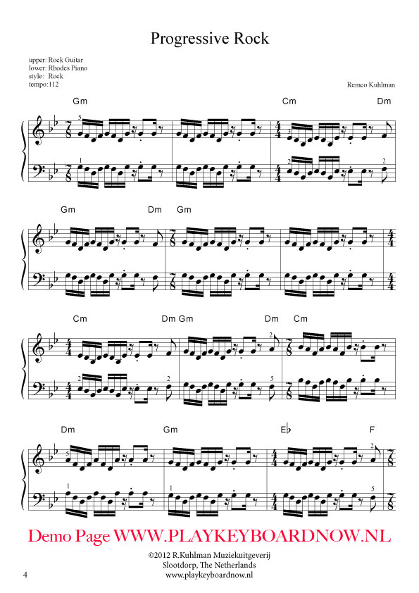 Dit boek bevat 11 uitdagende fullscore (2handige) rocksongs. Enkele stukken bevatten onregelmatige maatsoorten.